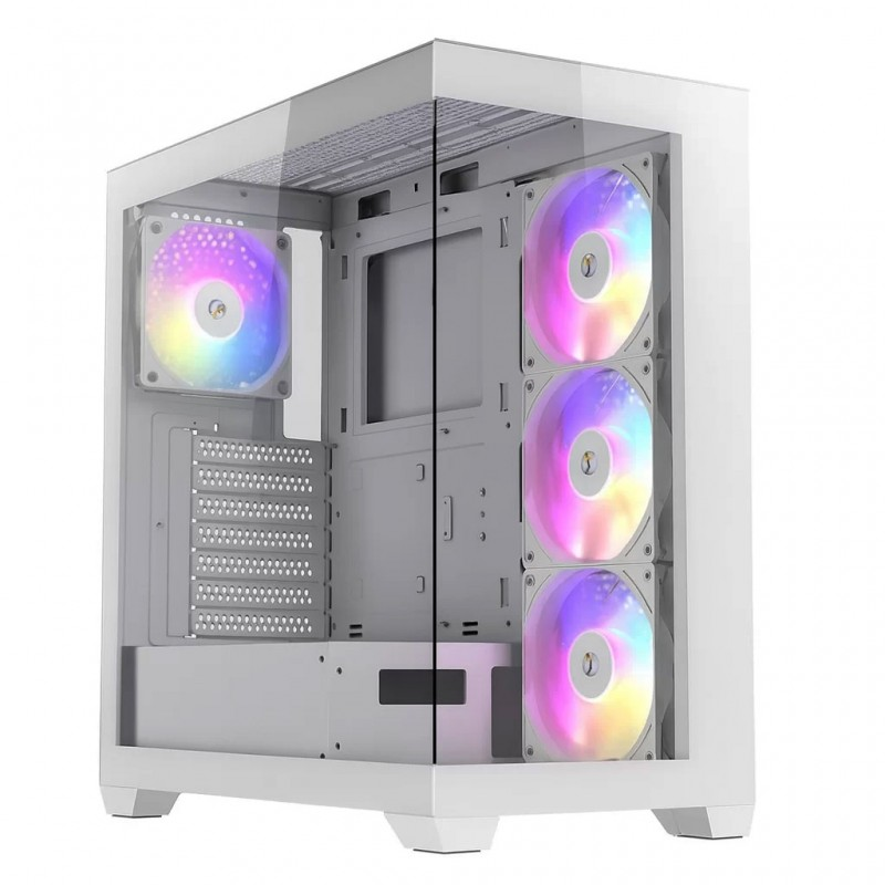 El Antec CX300 ARGB - White ofrece una solución de formato Mid Tower que combina un diseño visualmente atractivo con un rendimiento funcional. Este gabinete, con su estructura principal en negro y paneles laterales de vidrio templado, proporciona una vista directa del interior del sistema, permitiendo a los usuarios personalizar y mostrar sus componentes internos. La iluminación RGB programable (ARGB) integrada añade un elemento moderno y dinámico al equipo, ofreciendo una amplia gama de efectos de luz para adaptarse al gusto personal.