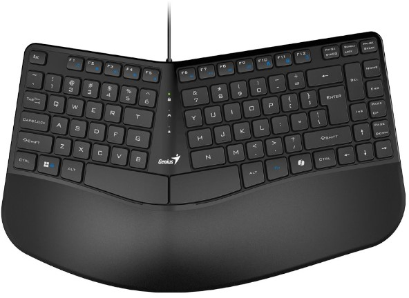 El Genius Ergo KB-700 es un teclado ergonómico meticulosamente diseñado para proporcionar una experiencia de escritura cómoda y prolongada, reduciendo la fatiga asociada con largas sesiones. Su innovador diseño en ola dividida facilita una postura más natural de las manos, minimizando la tensión en las áreas comunes de fatiga como antebrazos, muñecas y hombros. La disposición ergonómica del teclado está complementada con características diseñadas para un soporte óptimo, promoviendo una mayor comodidad durante el uso.