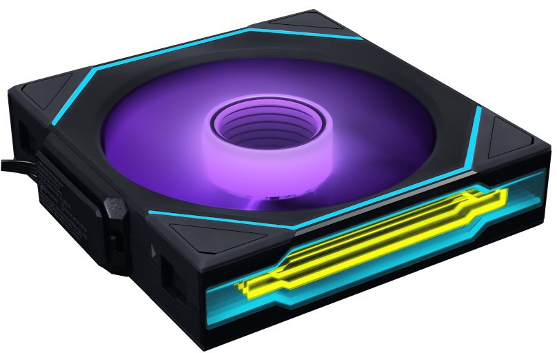 Un punto destacado de este ventilador es su capacidad de iluminación ARGB, que incorpora 58 LEDs personalizables. Mediante un control inalámbrico de 2.4 GHz (vendido por separado), los usuarios pueden seleccionar entre una amplia gama de efectos de iluminación y hasta mostrar imágenes o animaciones en formatos como MP4, GIF, JPG o PNG. Este control inalámbrico ofrece una flexibilidad considerable para adaptar la apariencia del sistema a las preferencias individuales.